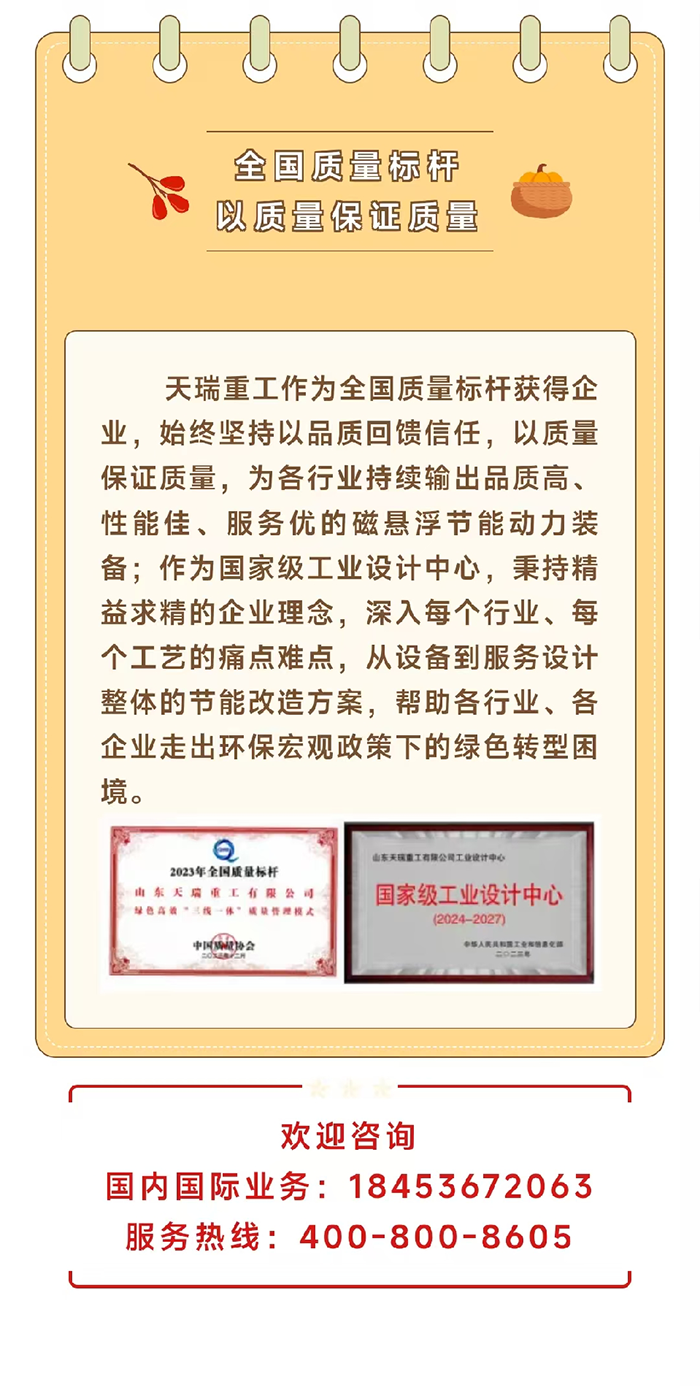 查看詳情 >山東天瑞重工有限公司是一家從事磁懸浮動(dòng)力技術(shù)研發(fā)的高新技術(shù)企業(yè),是國(guó)家企業(yè)技術(shù)中心,全國(guó)磁懸浮動(dòng)力技術(shù)標(biāo)準(zhǔn)化工作組秘書處單位,山東省節(jié)能環(huán)保裝備產(chǎn)業(yè)鏈“鏈主”。