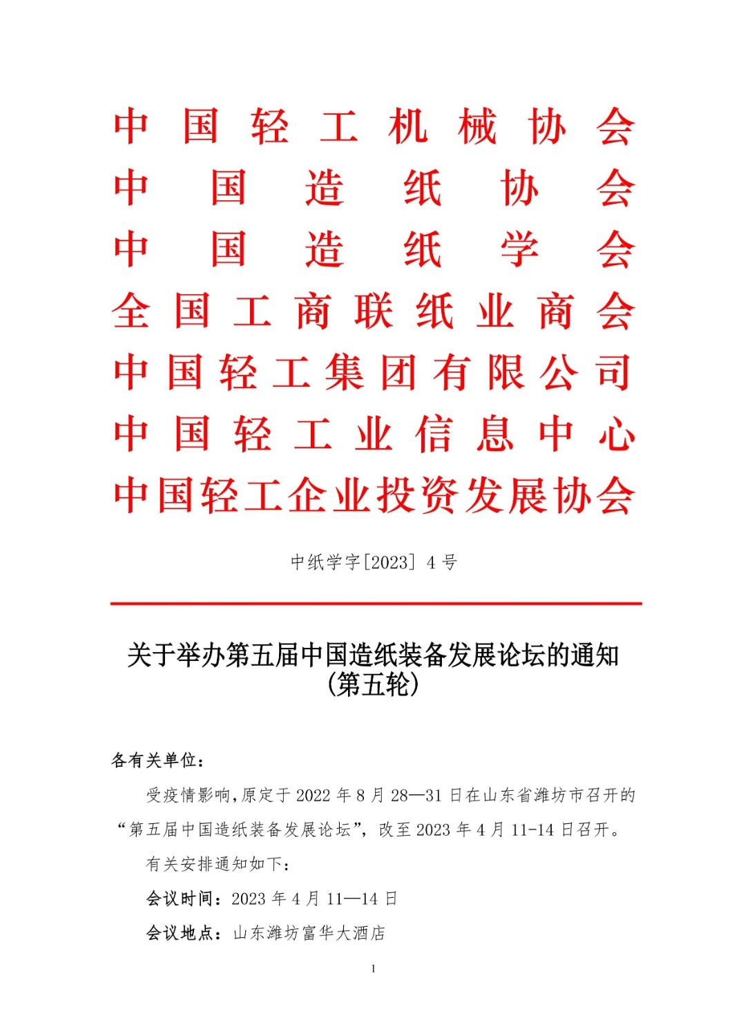 “第五屆中國造紙裝備發(fā)展論壇”將于2023年4月11-14日在山東濰坊舉辦。