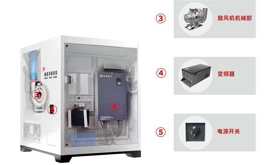◇ 磁浮鼓風(fēng)機(jī)不需要潤滑系統(tǒng),節(jié)省潤滑油和清潔成本