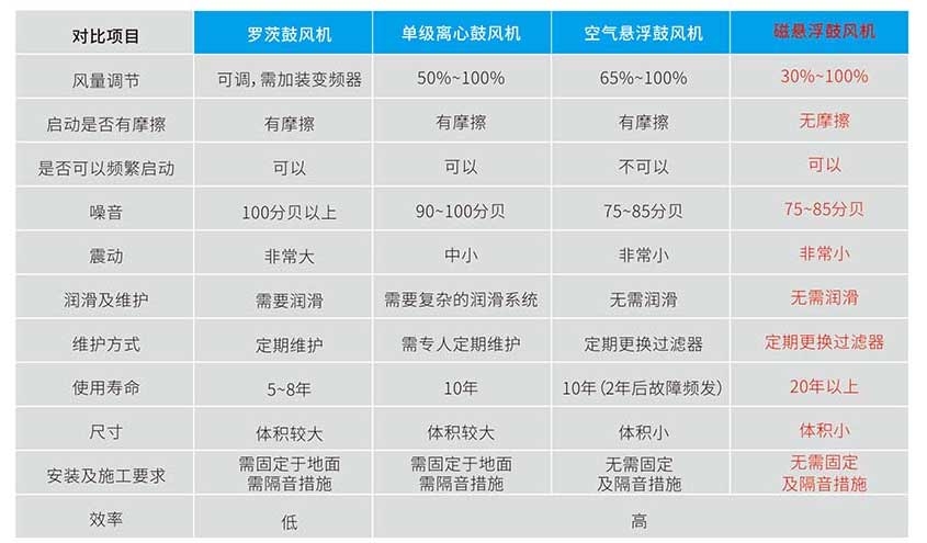 ◇ 與羅茨鼓風(fēng)機(jī)相比,磁浮鼓風(fēng)機(jī)的效率提高了30%以上。